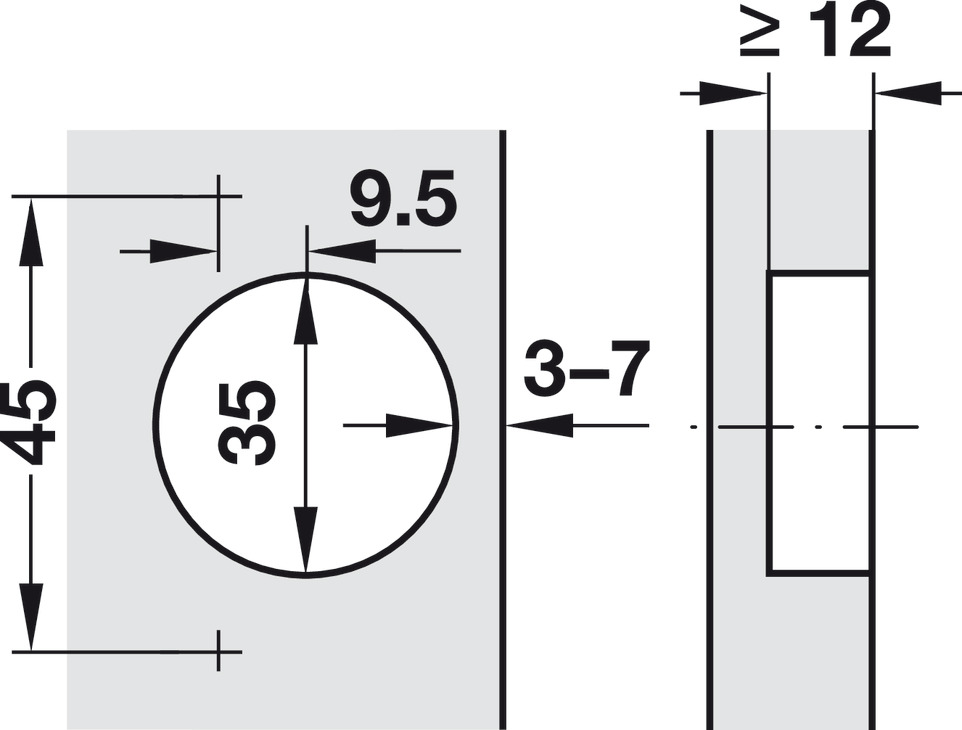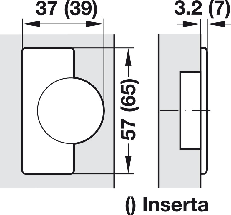 Udhëzime montimi : Për të montuar sipërfaqen e brendshme të derës në nivel me sipërfaqen e brendshme të kornizës, përdorni vetëm pllaka montimi me një hapësirë prej 3 mm. Pozicioni standard i vidës së pllakës së montimit është 21.5 mm nga buza e kornizës.