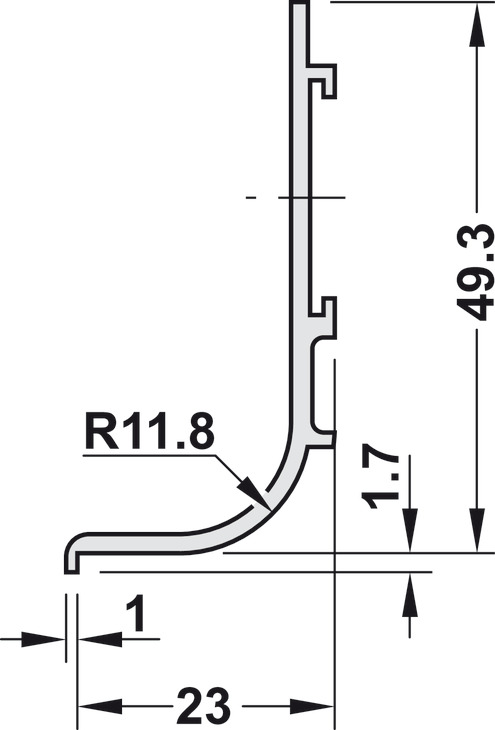Dorezë e futur, për ballina optike pa dorezë , e bërë nga alumini për montim midis tavolinës së punës dhe pjesës së përparme poshtë , me ngjyrë argjendi