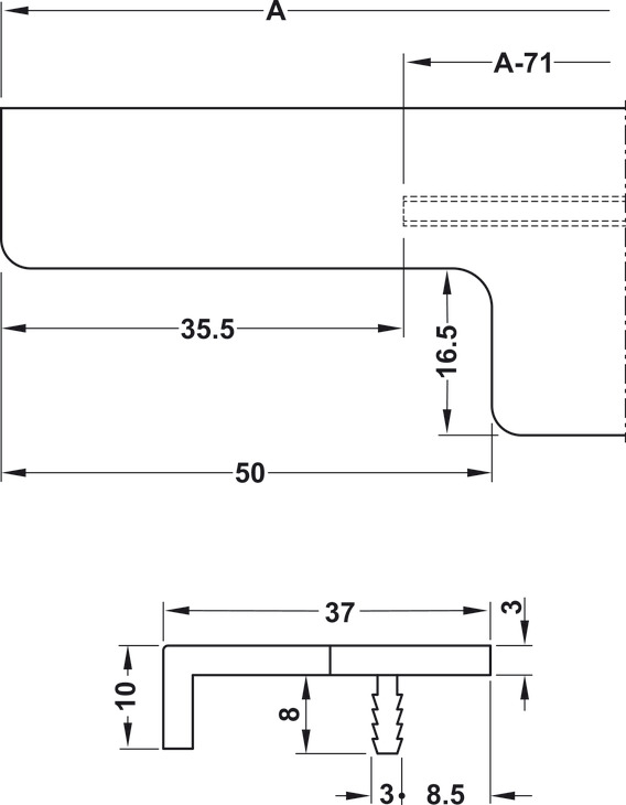 Thellësia 37.00 mm , Gjerësia 10.00 mm , Trashësia e profilit 3.00 mm