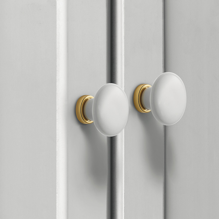 - Dorezë orendie rrumbullake porcelani e bardhë me ngjyrë ari në bazë Ø 30 mm