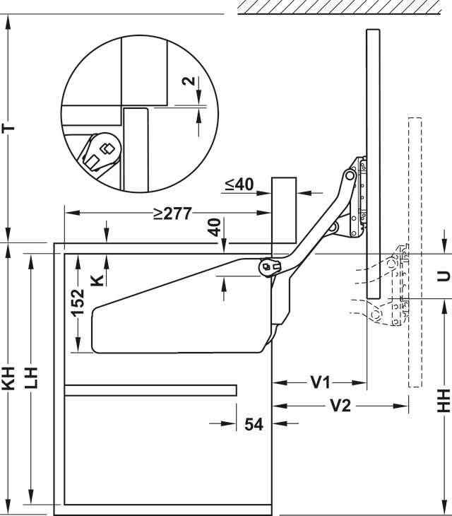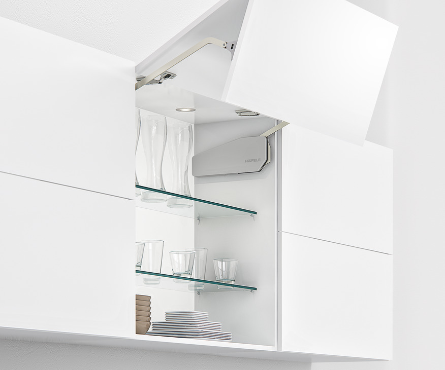 - For one-piece flaps made from wood, glass or with aluminium frame, Cabinet height: 430-600 mm, flap