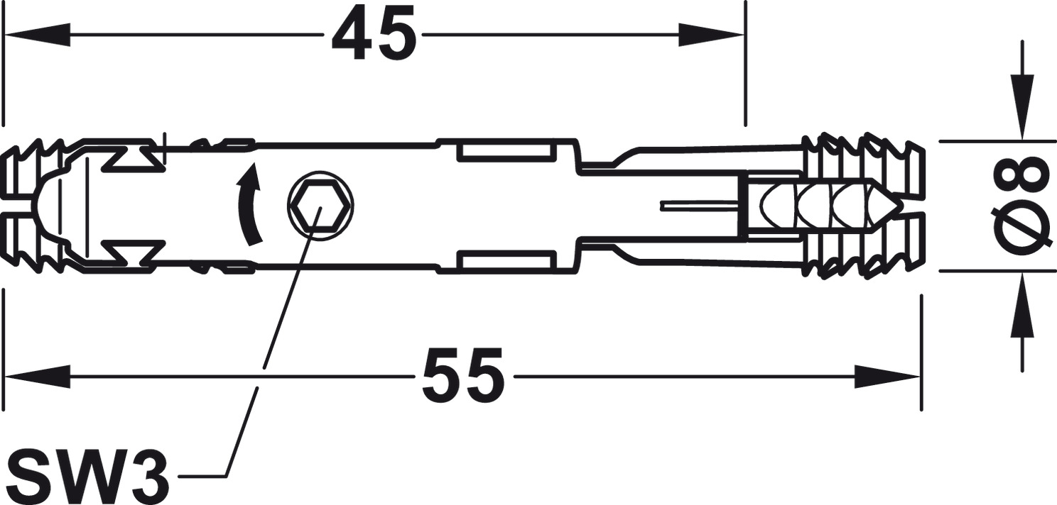 Zona e aplikimit : për instalimin e fshehur të nyjeve të karkasës në MDF dhe karton të grimcuar