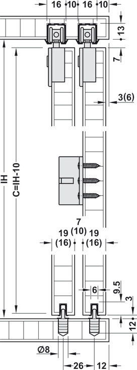 - Mekanizëm për derë rrëshqitës me ndales në të dy anët trashësi 16-19 mm ,dera ≥550 mm