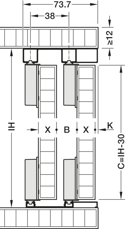 - Mekanizëm për derë rrëshqitëse me ndales në të dy anë (20 kg)