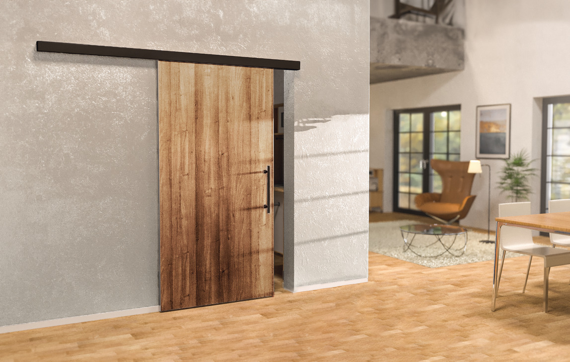 - Mekanizëm për derë rrëshqitëse me ndalesa nga të dy anët