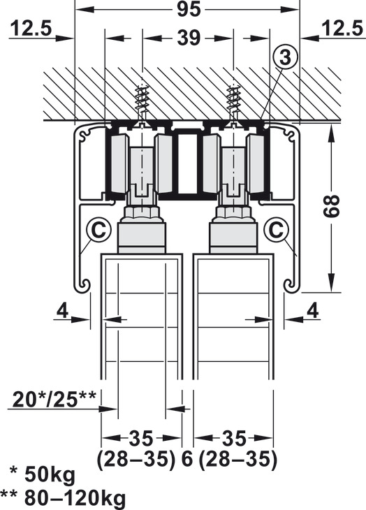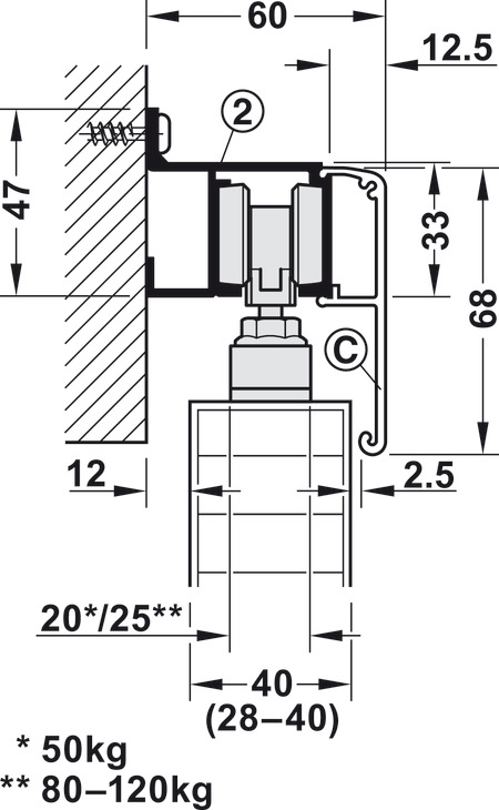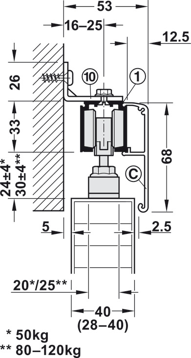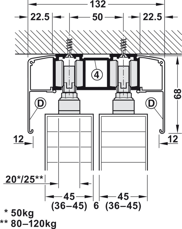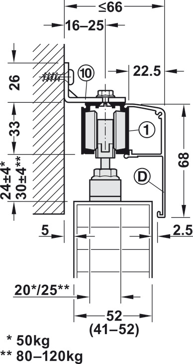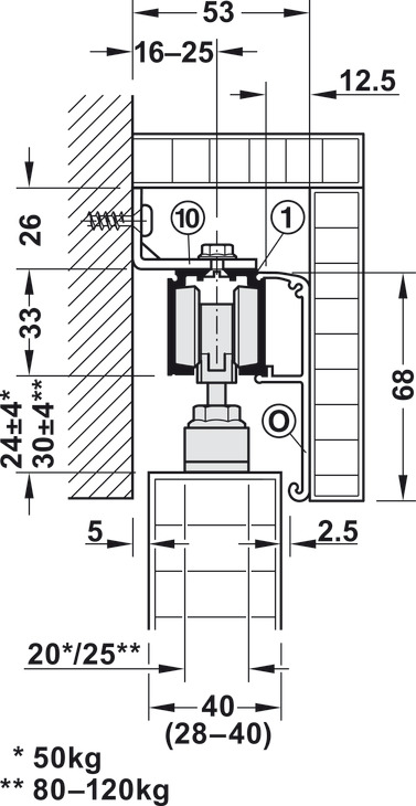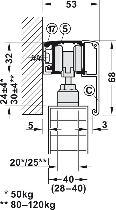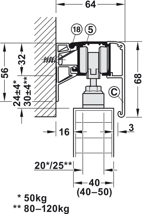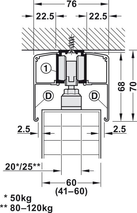 Për peshën e derës : ≤120 kg