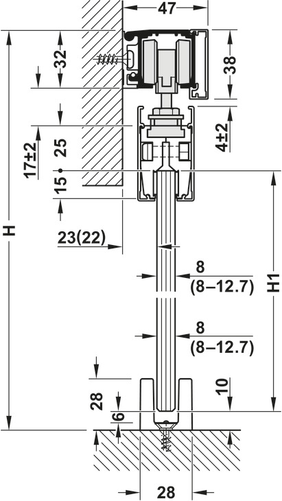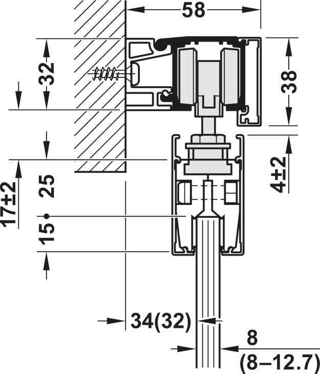 - Mekanizëm për derë rrëshqitëse, për një xham mbyllje të butë në një anë
