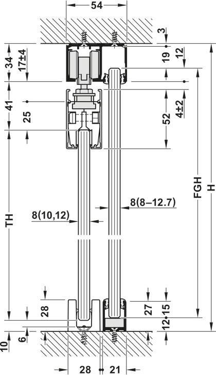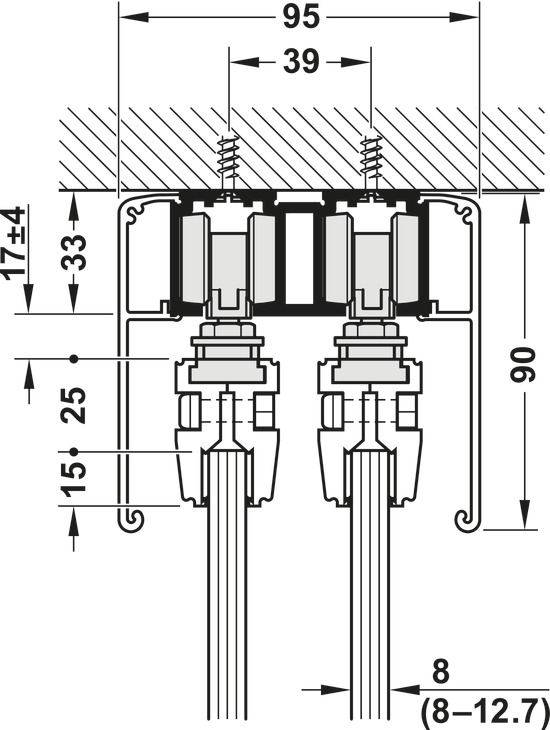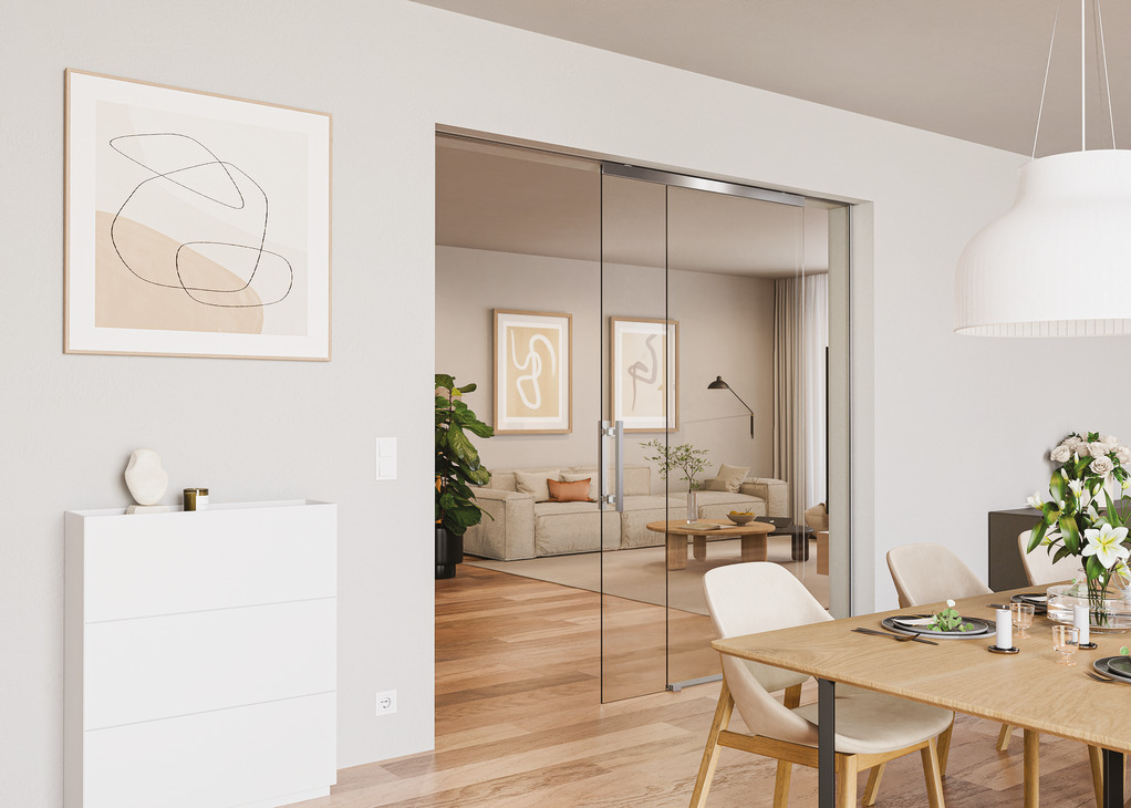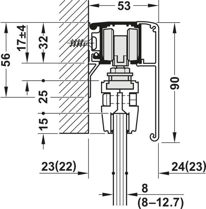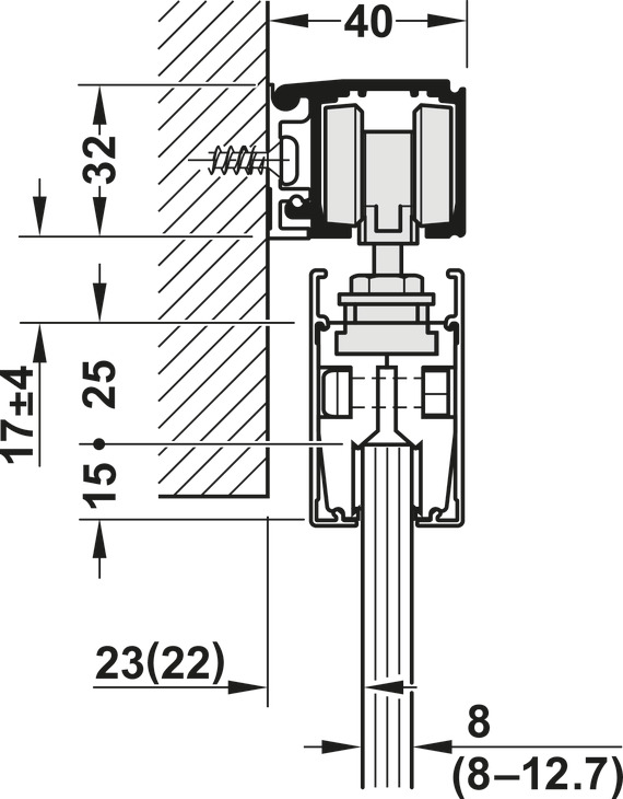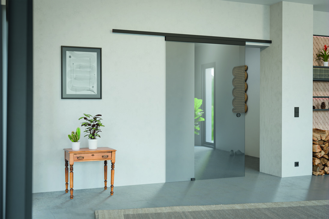 - Mekanizëm për derë rrëshqitëse, për një xham mbyllje të butë në të dy anët