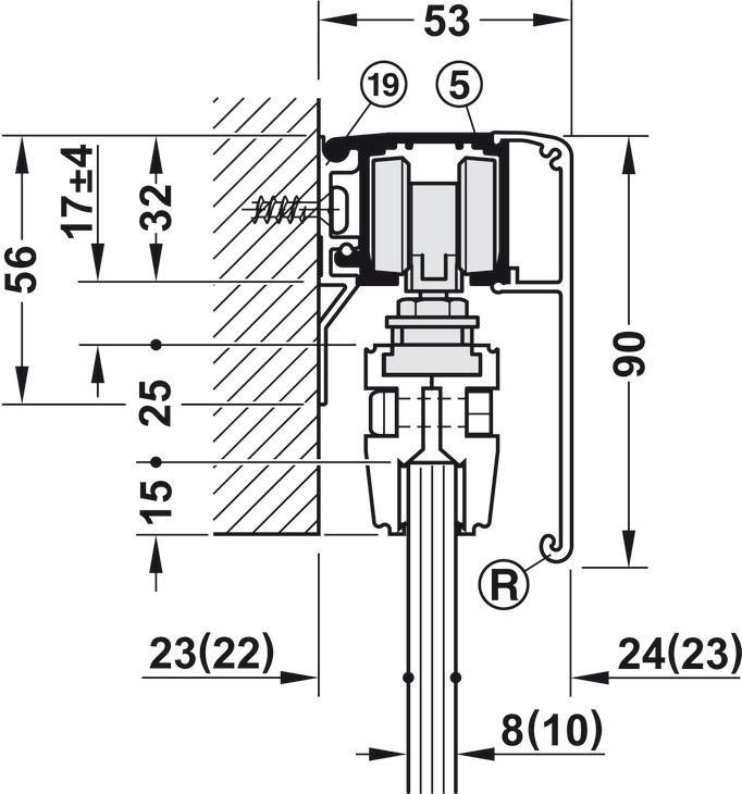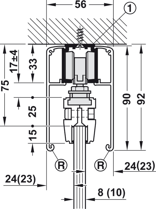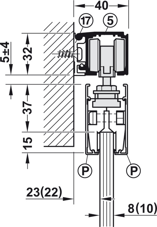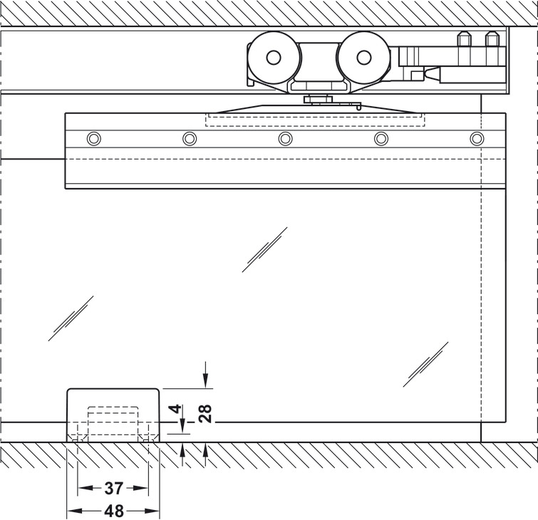 - Mekanizëm për derë rrëshqitëse, për një xham mbyllje të butë në të dy anët
