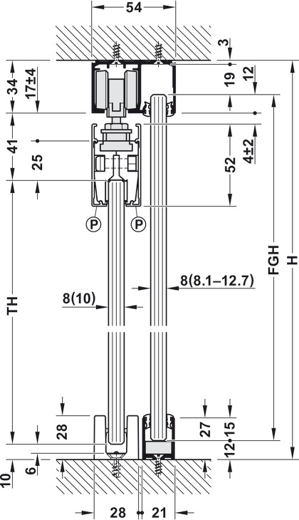 Për peshën e derës : ≤50 kg