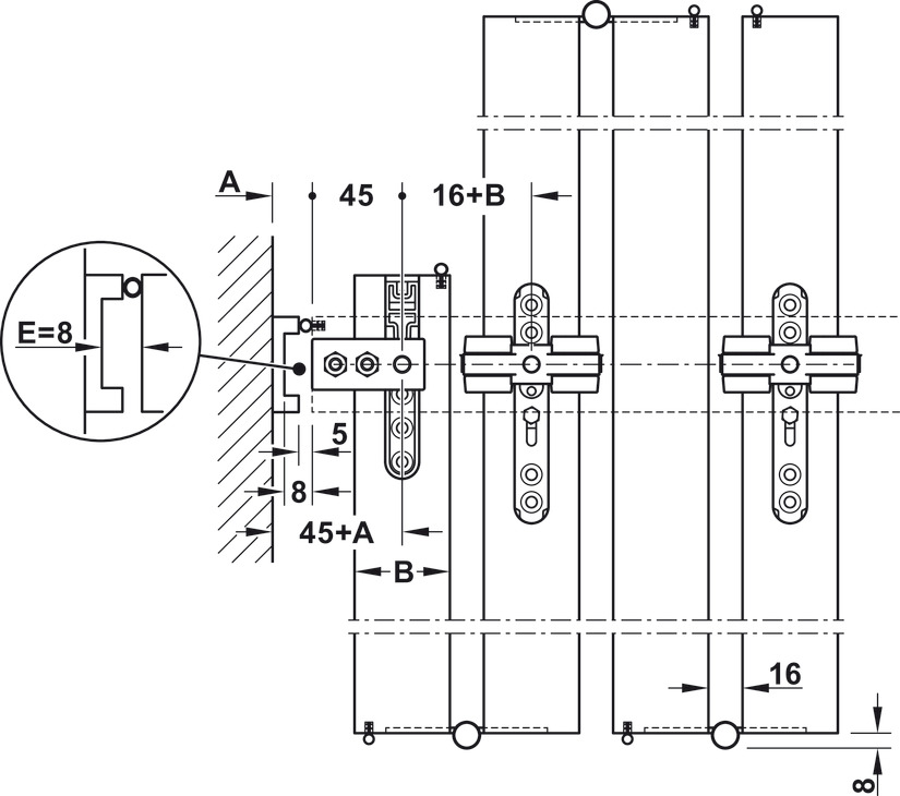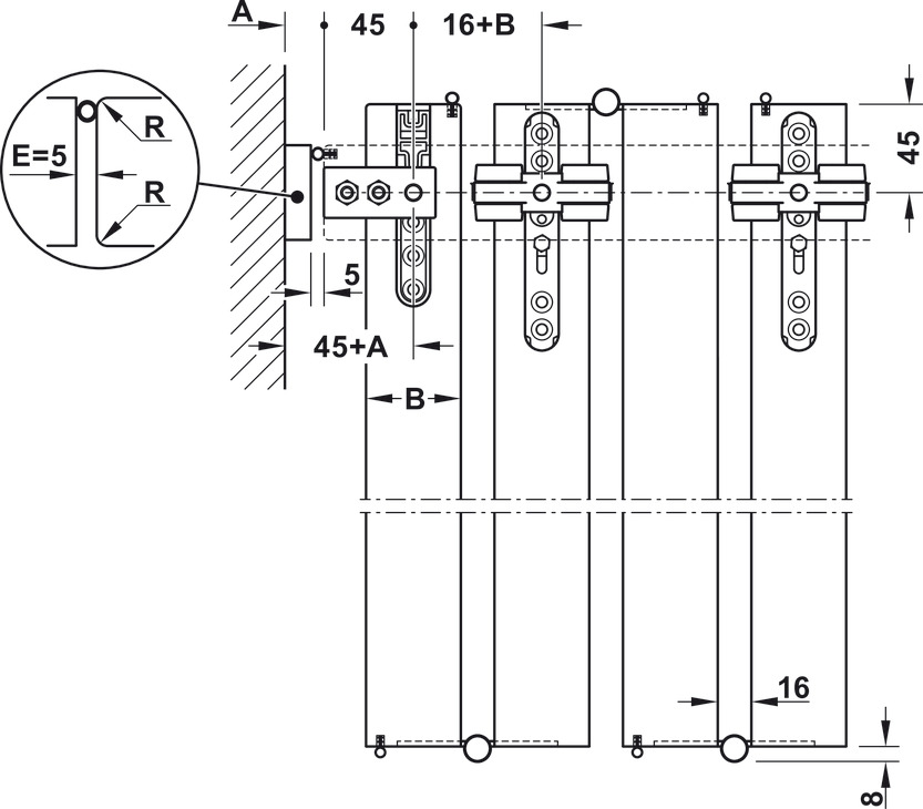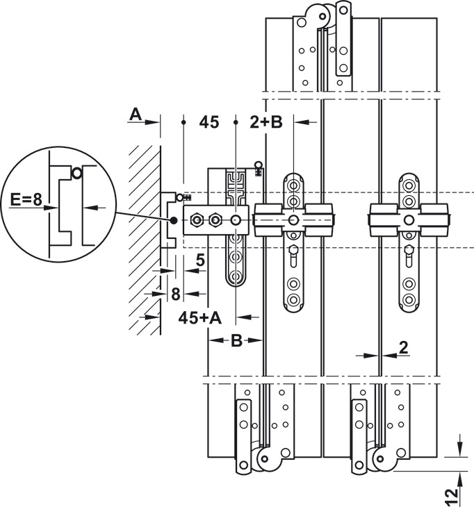 Gjerësia e hapjes së brendshme, 2 anë : 8 m