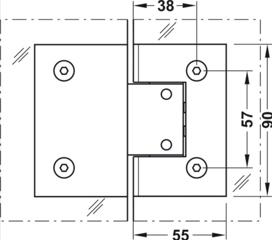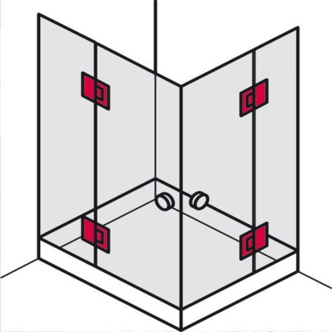 - Menteshë (Bagllamë) për derën e xhamit, këndi i hapjes 180°, nikeli i lyer dhe i poluar ,trashësia e xhamit : 8-12 mm