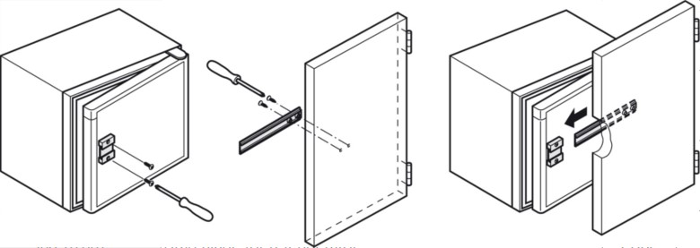 Zona e aplikimit Për lidhjen e derës së integruar të frigoriferit me derën e mobiljeve të montuar (mbuluar ) paraprakisht