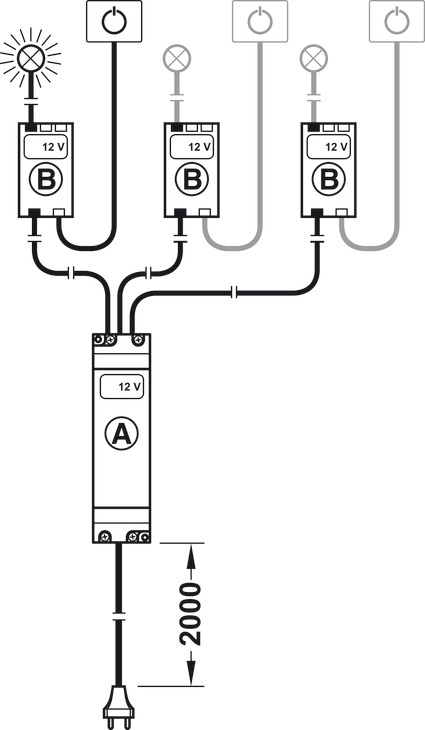 - Shpërndarës 42 W për 12 V me 3 porta , 1 port për ndërprerës