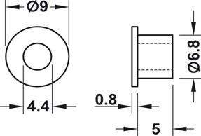 - Shtojcë e brendshme, plastike, për pritjen e dorezave në dyer qelqi, Gjatësia: 5 mm, Diameteri i brendshëm: 4,4 mm.
