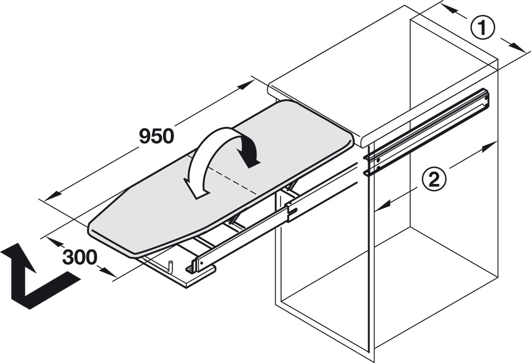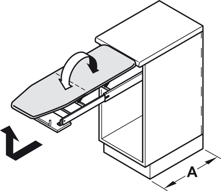 - Tavolinë për hekurosje , montimi në sirtarë , mbulesa hiri me vija